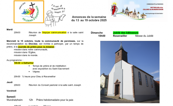 Semaine du 13 au 19 octobre 2025
