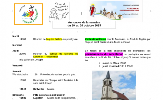 Semaine du 20 au 26 octobre 2025