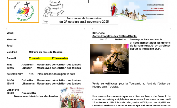 Semaine du 27 octobre au 02 novembre 2025