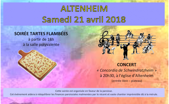 Soirée tartes flambées à Altenheim le 21 avril 2018