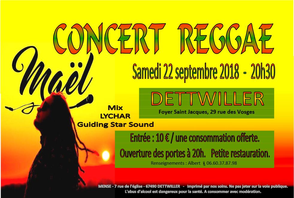 mense curiale Concert Reggae samedi 22 septembre Publié 19 septembre 2018 Ce concert est organisé par la mense curiale au profit des activités pastorales de notre communauté de paroisses.