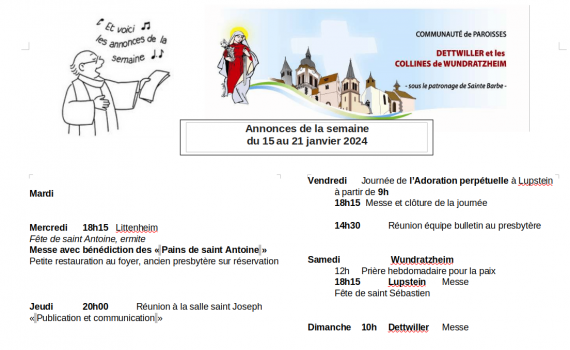 Semaine du 15 au 21 janvier 2024