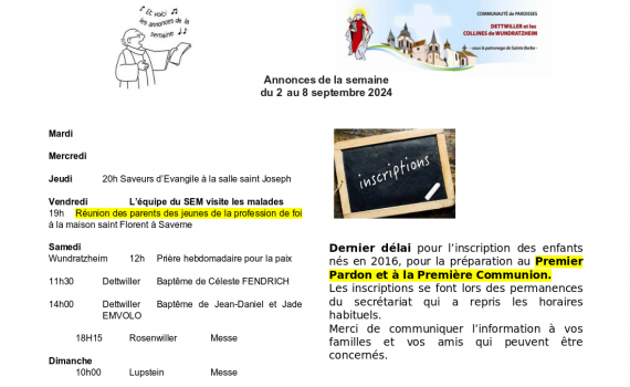 Le bulletin paroissial de septembre 2024 est disponible