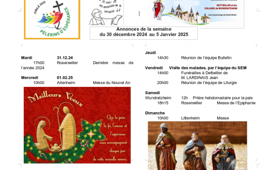 Semaine du 30 décembre 2024 au 05 janvier 2025