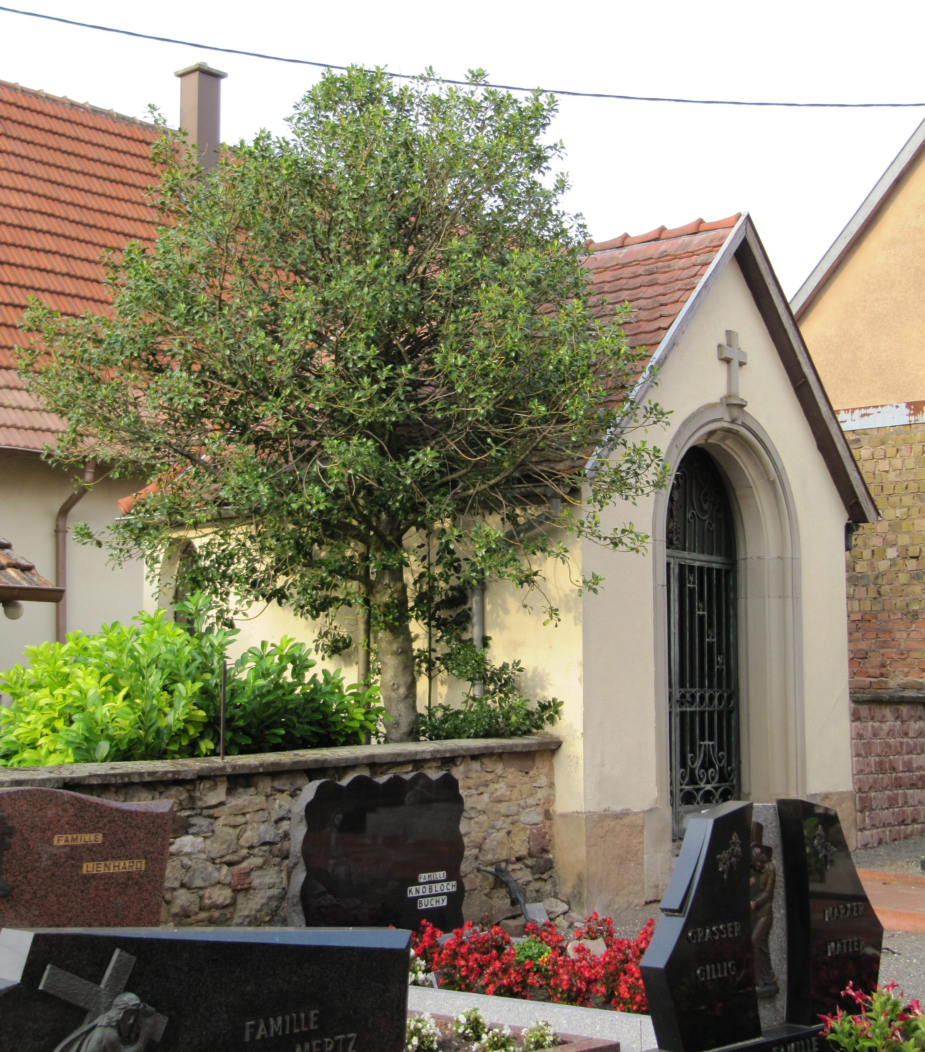 Une plaque de marbre perpétue le souvenir du curé Joseph Four qui est à l’origine de cette construction. Né le 10 juillet 1866 à Dieffenbach, ordonné prêtre en 1894, l’abbé Four arrive à Altenheim en 1929. Il restera le curé de cette paroisse jusqu’à sa mort, en 1943. Ayant exprimé le désir d’être inhumé dans ce village, le prêtre obtient d’un villageois la mise à disposition gracieuse d’un bout de terrain jouxtant, l’angle nord-est du cimetière. Les travaux de construction de cette chapelle, destinée à la dévotion des paroissiens et à abriter ultérieurement le tombeau du curé Four, peuvent débuter. Dès 1935, deux maçons du village et une équipe de bénévoles se mettent à l’œuvre. Endormi dans l’espérance de la résurrection, le 13 septembre 1943, l’abbé Joseph Four sera inhumé dans son tombeau le 15 septembre, jour de la fête de Notre-Dame-des-Sept-Douleurs.