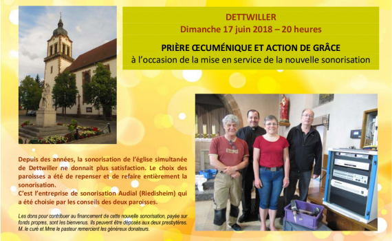 Prière oecuménique et action de grâce Dimanche 17 juin 2018