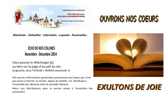 Le bulletin paroissial de novembre/décembre 2024 est disponible