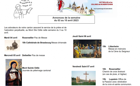 Semaine du 03 au 10 avril 2023
