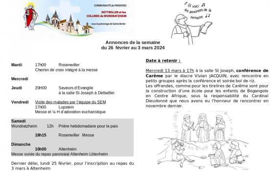 Semaine du 26 février au 03 mars 2024