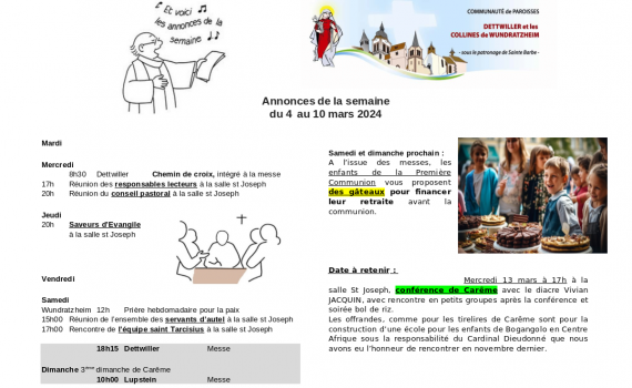 Semaine du 04 au 10 mars 2024