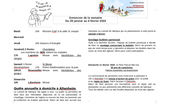 Semaine du 29 janvier au 04 février 2024