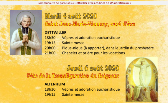 Fête Saint Jean-Marie Vianney et Transfiguration 2020