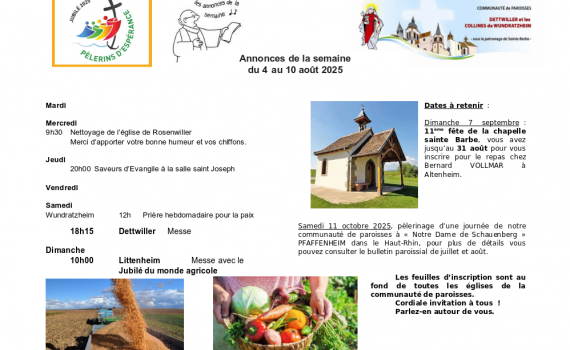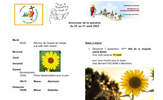 Semaine du 25 au 31 août 2025