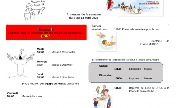 Semaine du 08 au 14 avril 2024