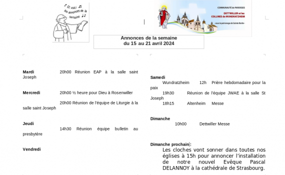 Semaine du 15 au 21 avril 2024