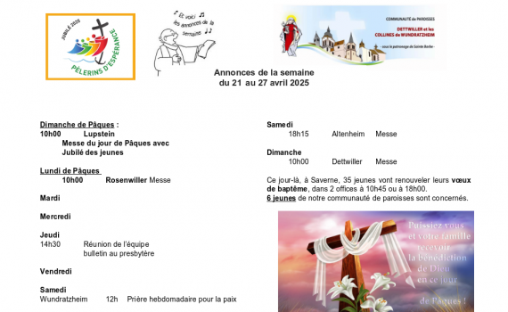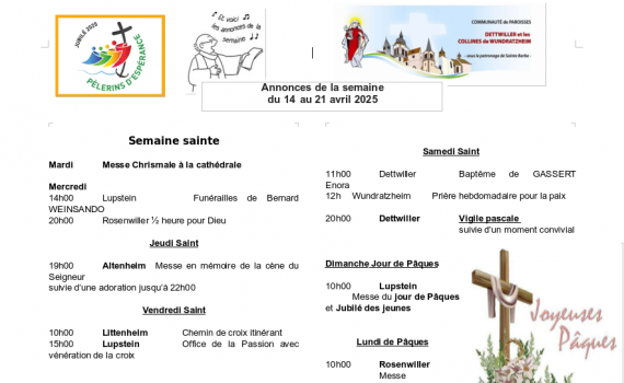 Semaine du 14 au 21 avril 2025