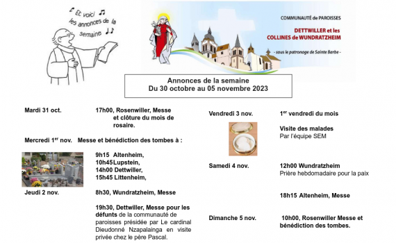Semaine du 30 octobre au 05 novembre 2023