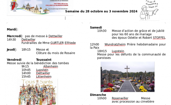 Semaine du 28 octobre au 03 novembre 2024